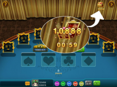 进入《欢乐飞五》游戏平台,随意进入平台里任何游戏,以‘万人炸金花’为例,游戏界面右上角会出现如图所示的小宝箱,每隔一段时间,宝箱下方的数字倒计时就会变成‘领取奖励’字样,届时点击宝箱就会免费或者大量金币!